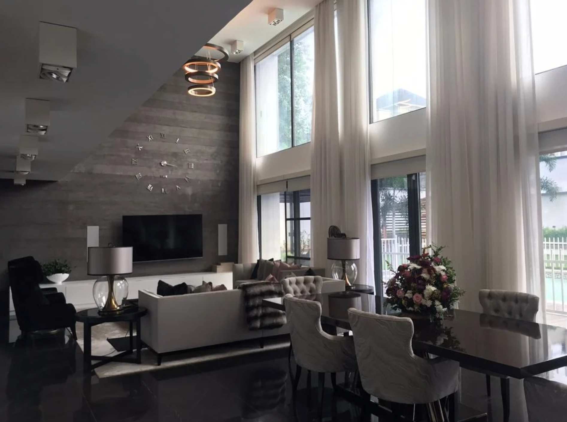 In this modern home designed with modern lighting and a double height great room with glass walls, the challenge was to deliver good sound with seamless control of lighting both natural and artificial.